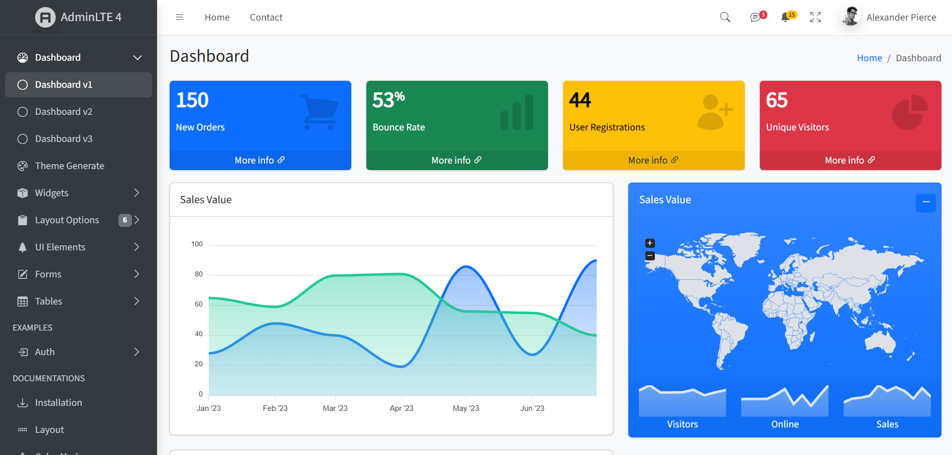 AdminLTE คือเทมเพลตที่สร้างด้วย Bootstrap, HTML, CSS และ JavaScript ช่วยให้เราสร้างหน้า Dashboard แบบมี Sidebar, Navbar, Chart, Card และ Table ได้เลย โดยไม่ต้องออกแบบใหม่ทั้งหมด 💼