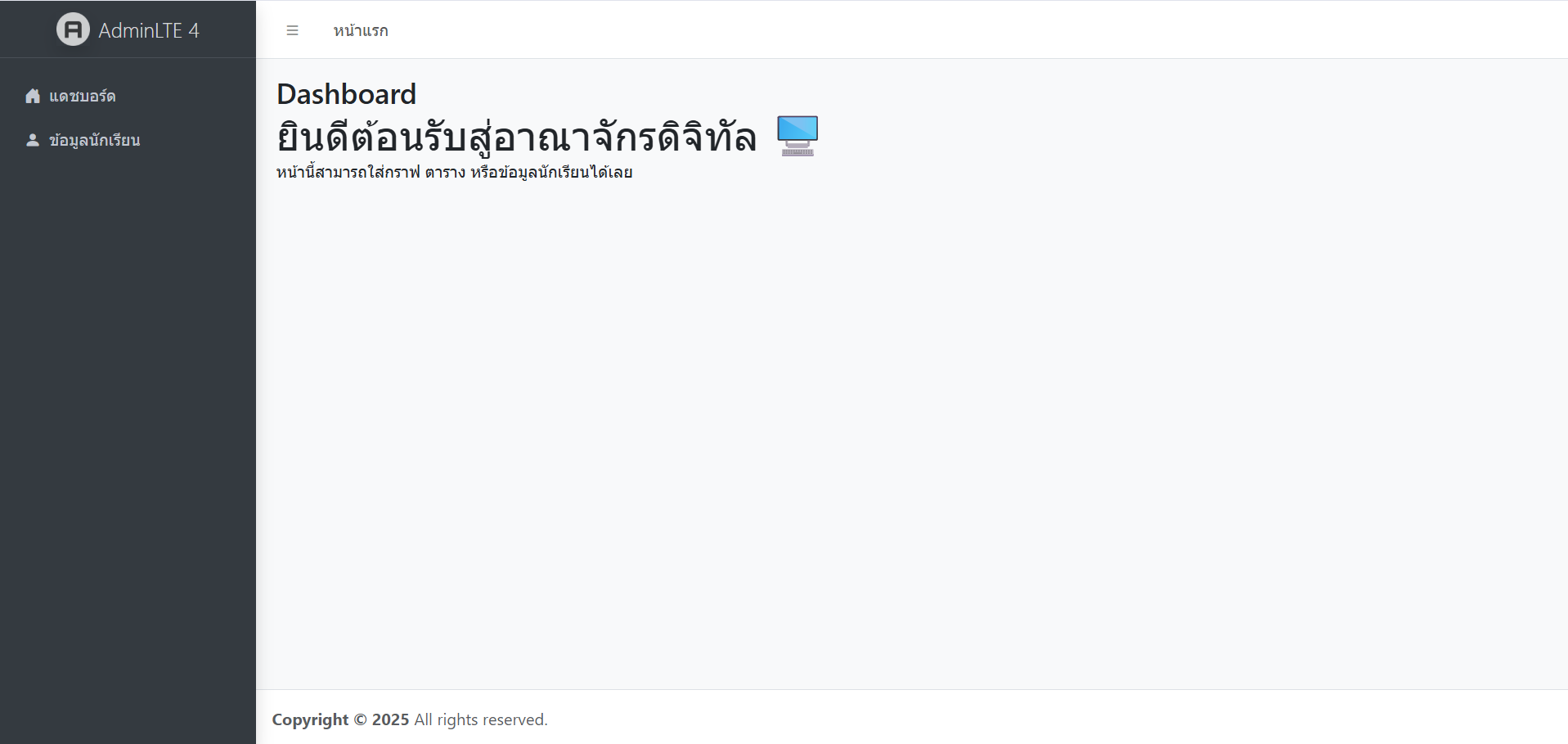 <h1 class="m-0">ยินดีต้อนรับสู่อาณาจักรดิจิทัล 🖥️</h1>